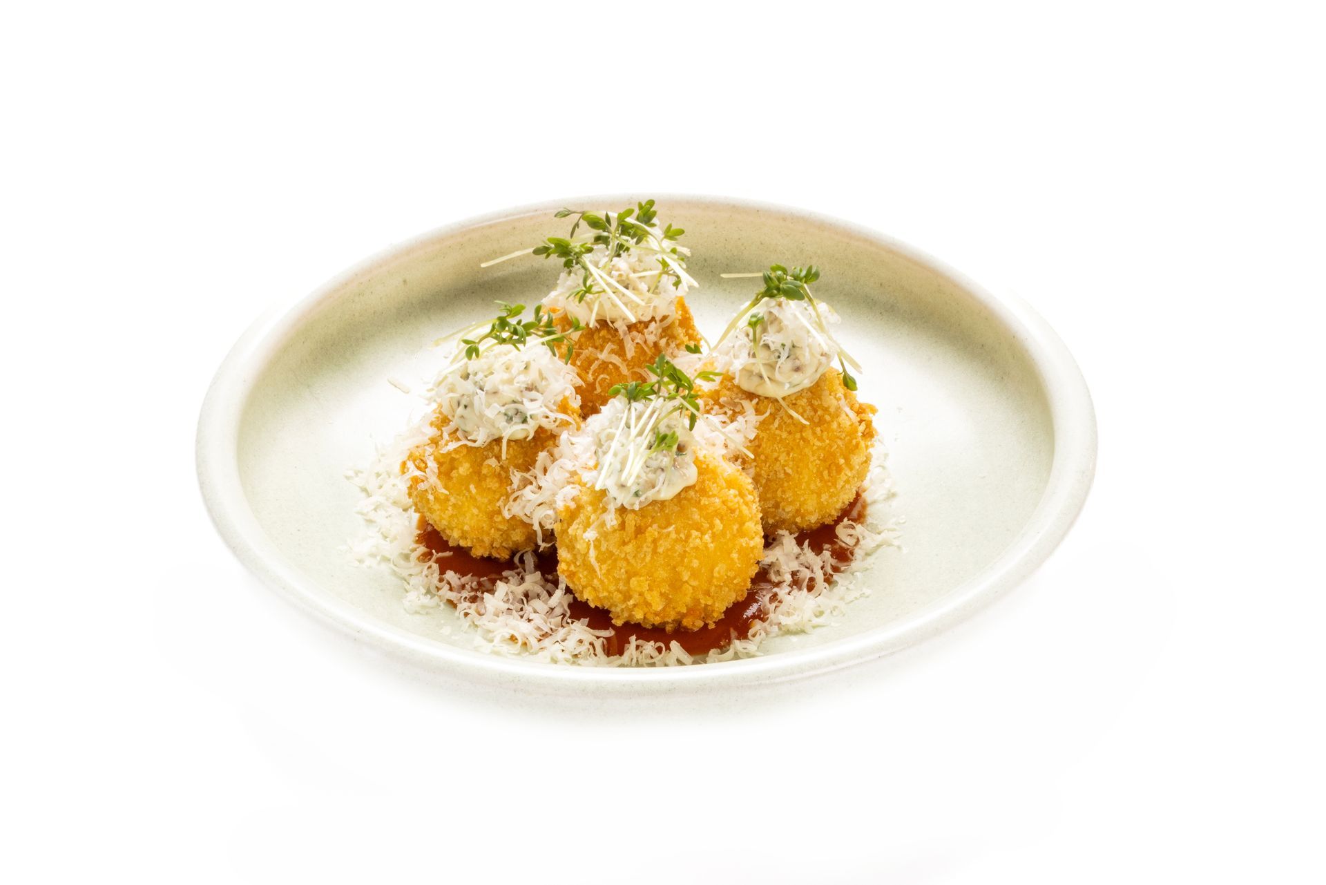 - Arinchini með tómatsultu, sveppakremi og parmesan