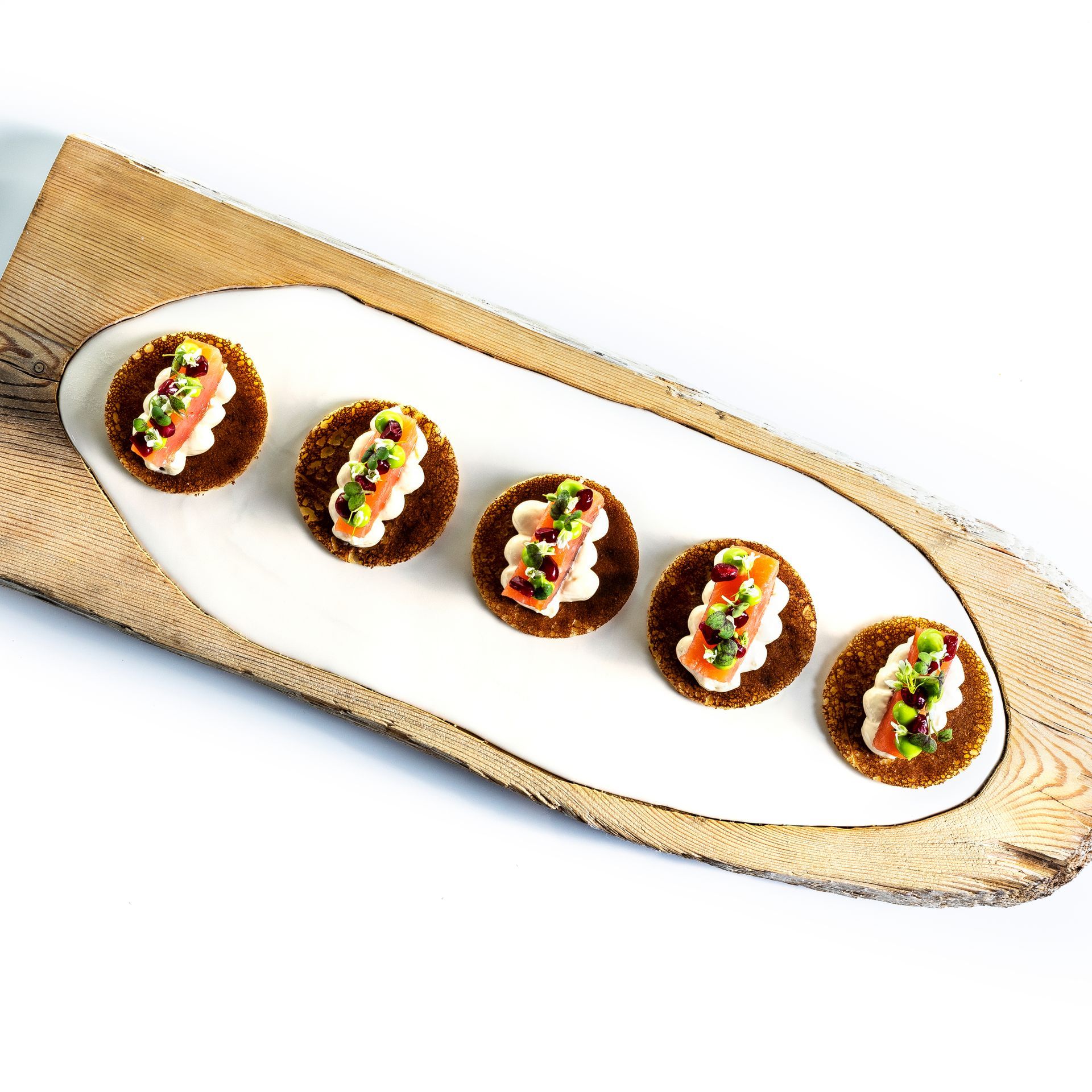 - Reykt bleikja, pönnukaka, wasabi-rjómi og granatepli