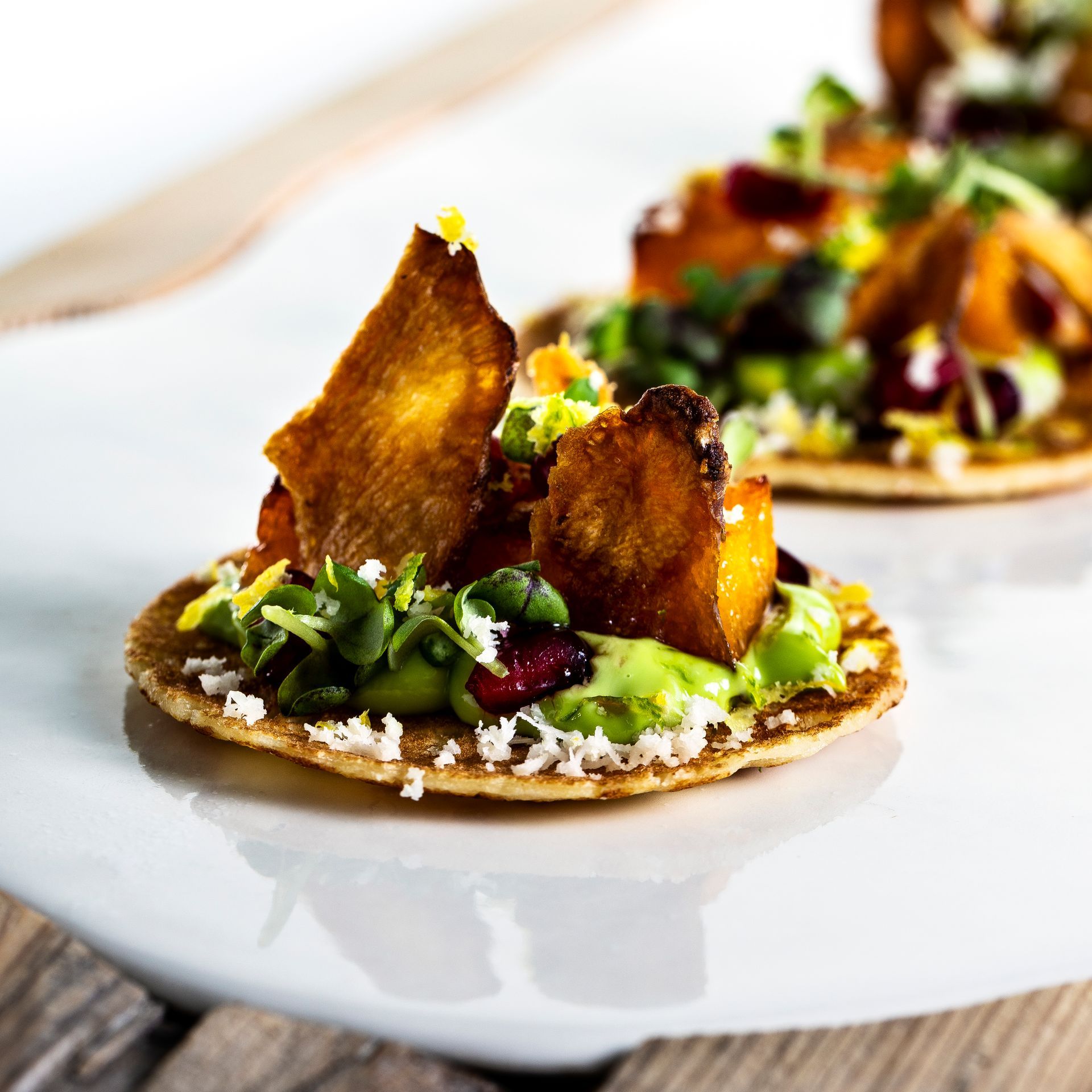 - Ristað súrdeigsbrauð, reykt vegan ostakrem, rauðrófur, piparrót.