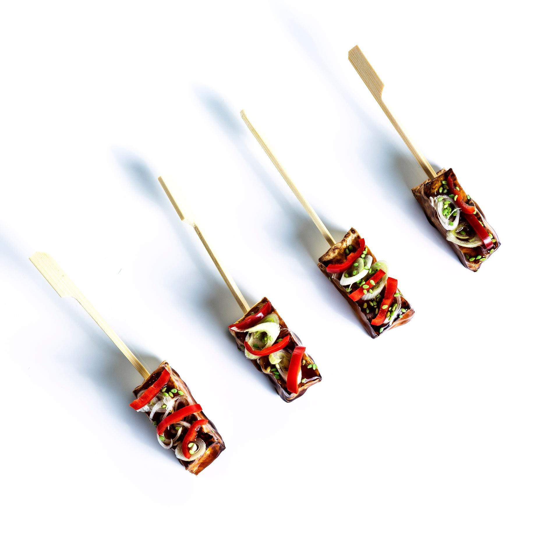 - Sellerírótarspjót með teriyaki, chili, vorlauk og ristuðu sesamfræjum.